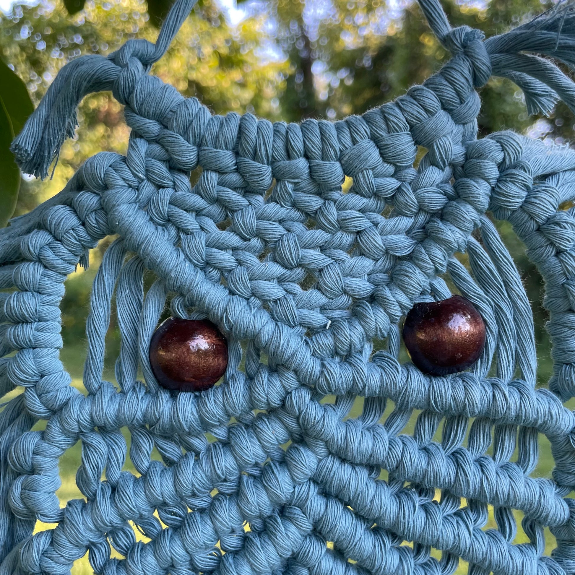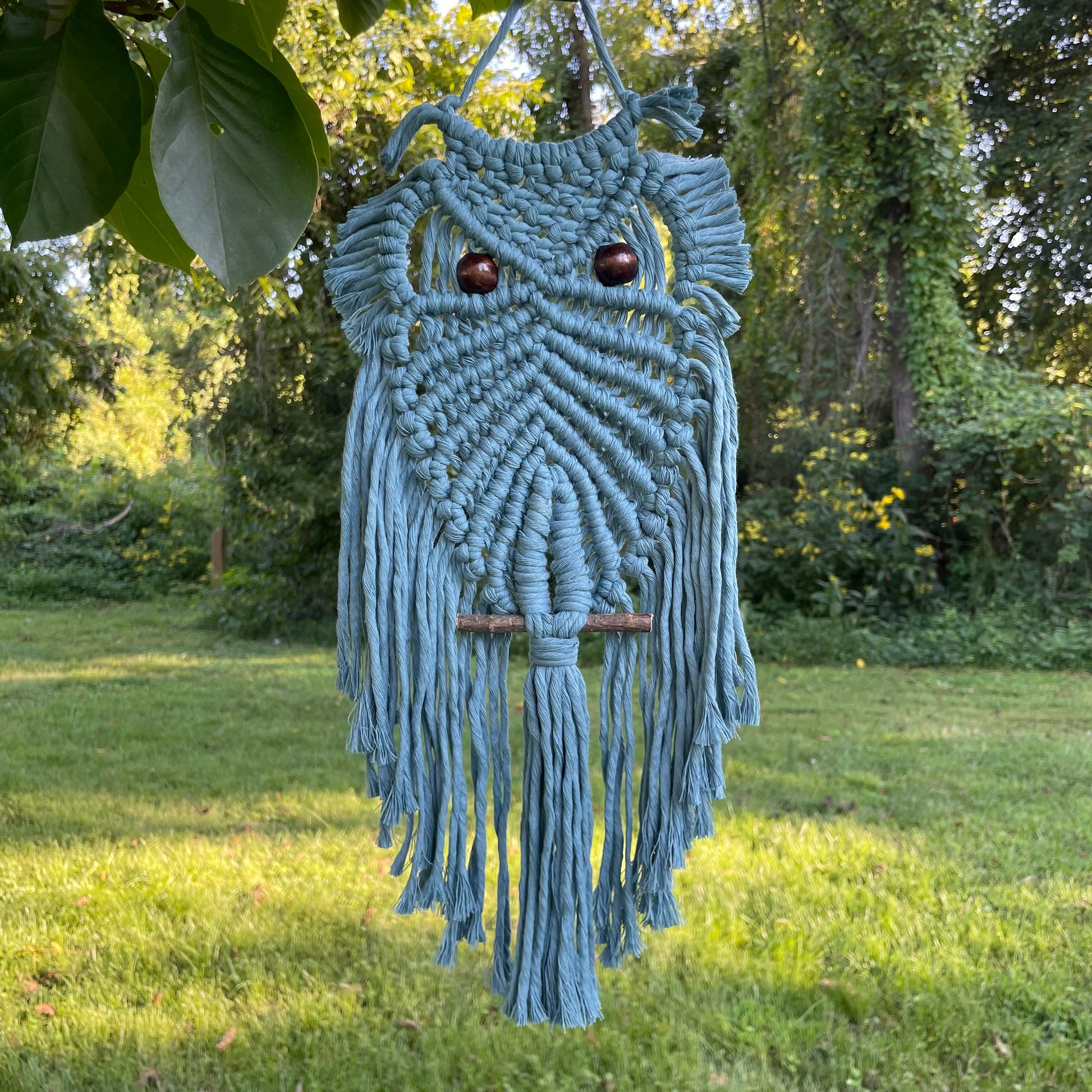 Bring a touch of nature and whimsy into your home with this macrame owl wall hanging. Crafted from recycled cotton cord, adorned with charming wooden beads, and perched on a twig, this unique piece is perfect for anyone who loves owls (or cool home decor - we won't judge). Plus, it makes a thoughtful gift for the owl enthusiast in your life. Who wouldn't want this adorable and sustainable addition to their living space? Get yours today!