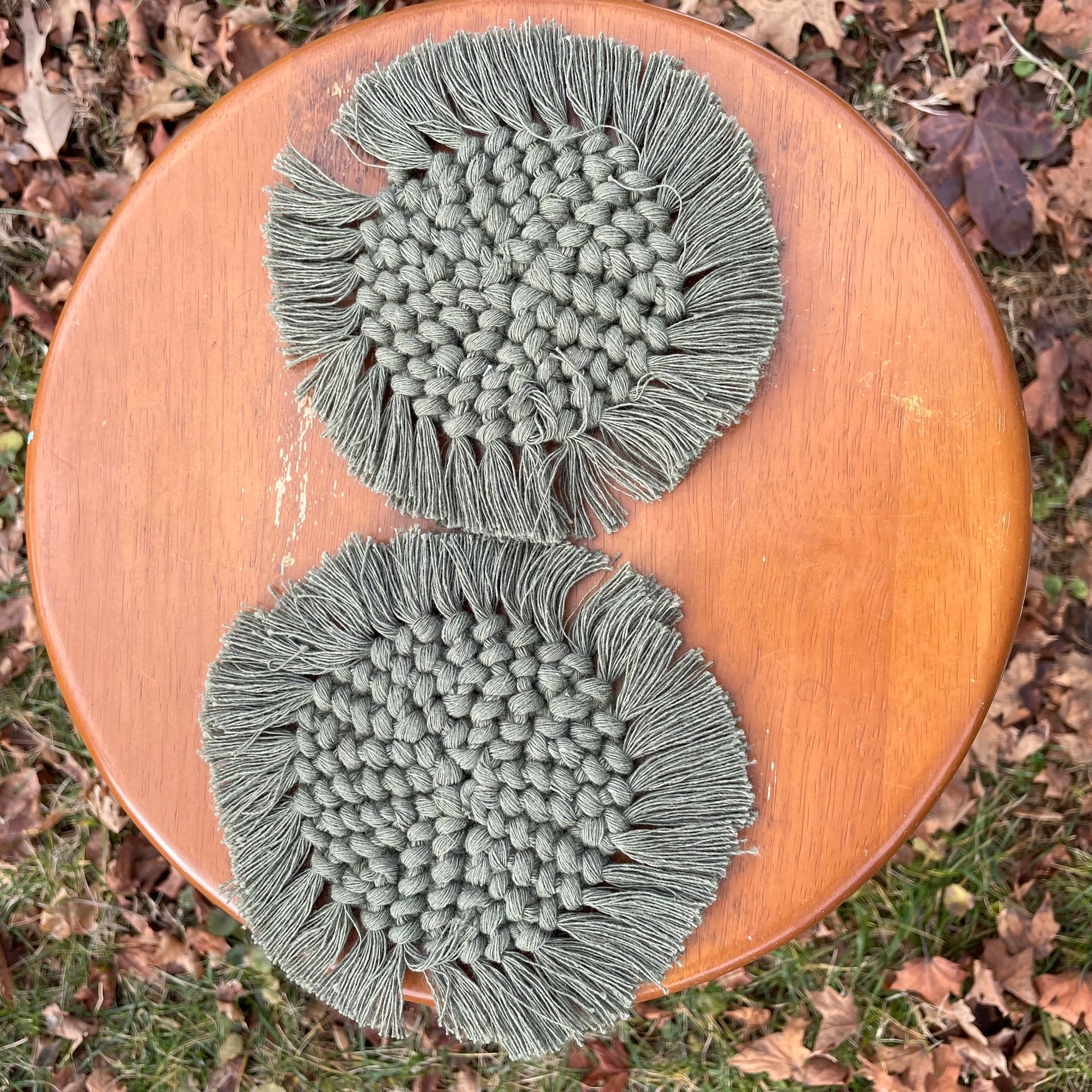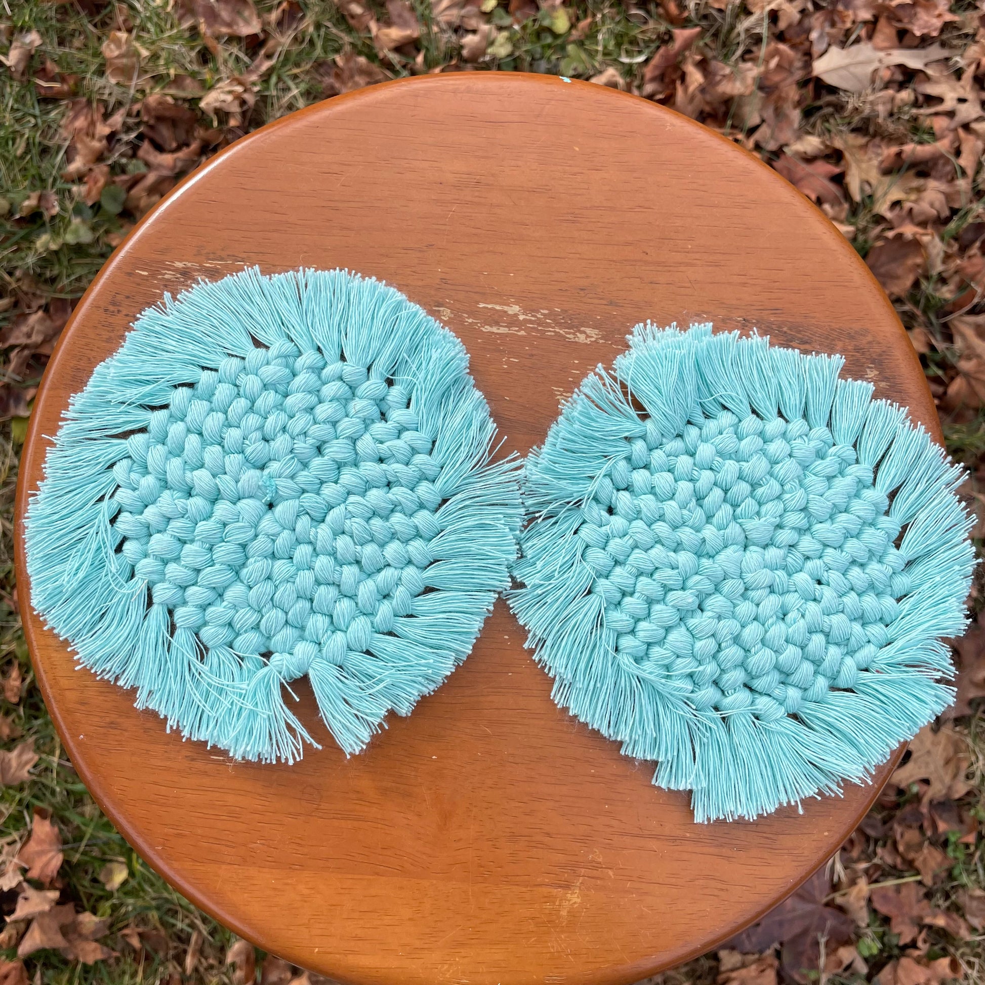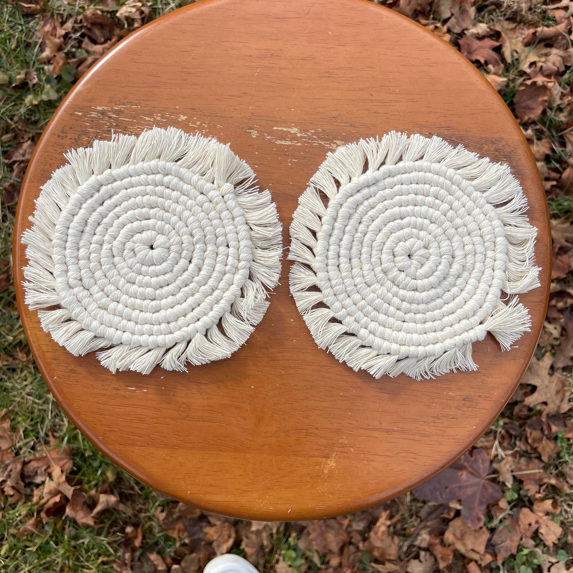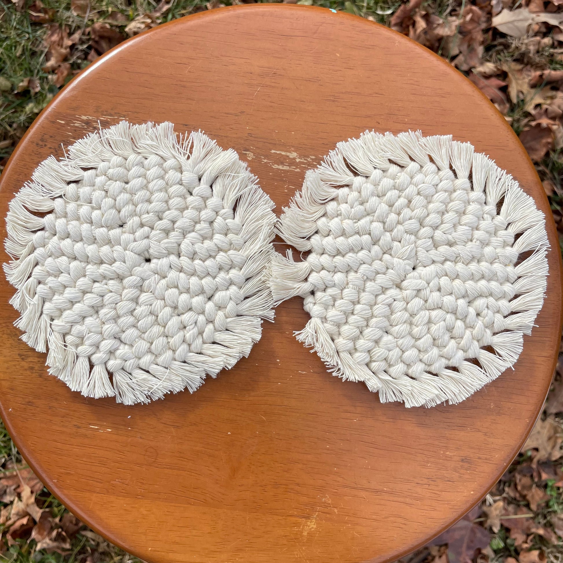 Protect your table and add a touch of bohemian style with these handcrafted macrame coasters. Choose from a variety of colors, or reach out for a custom creation. And, get two for the price of one - what a bargain!