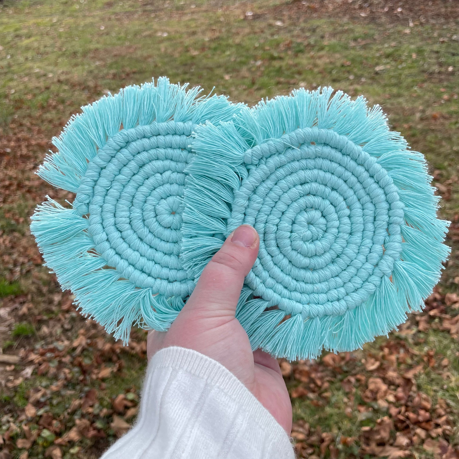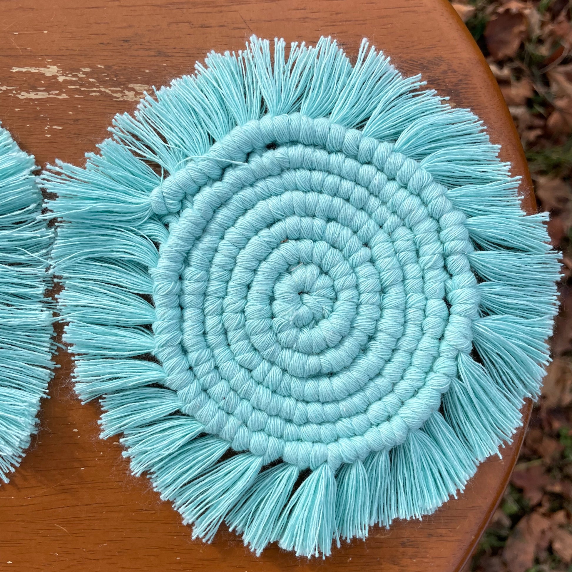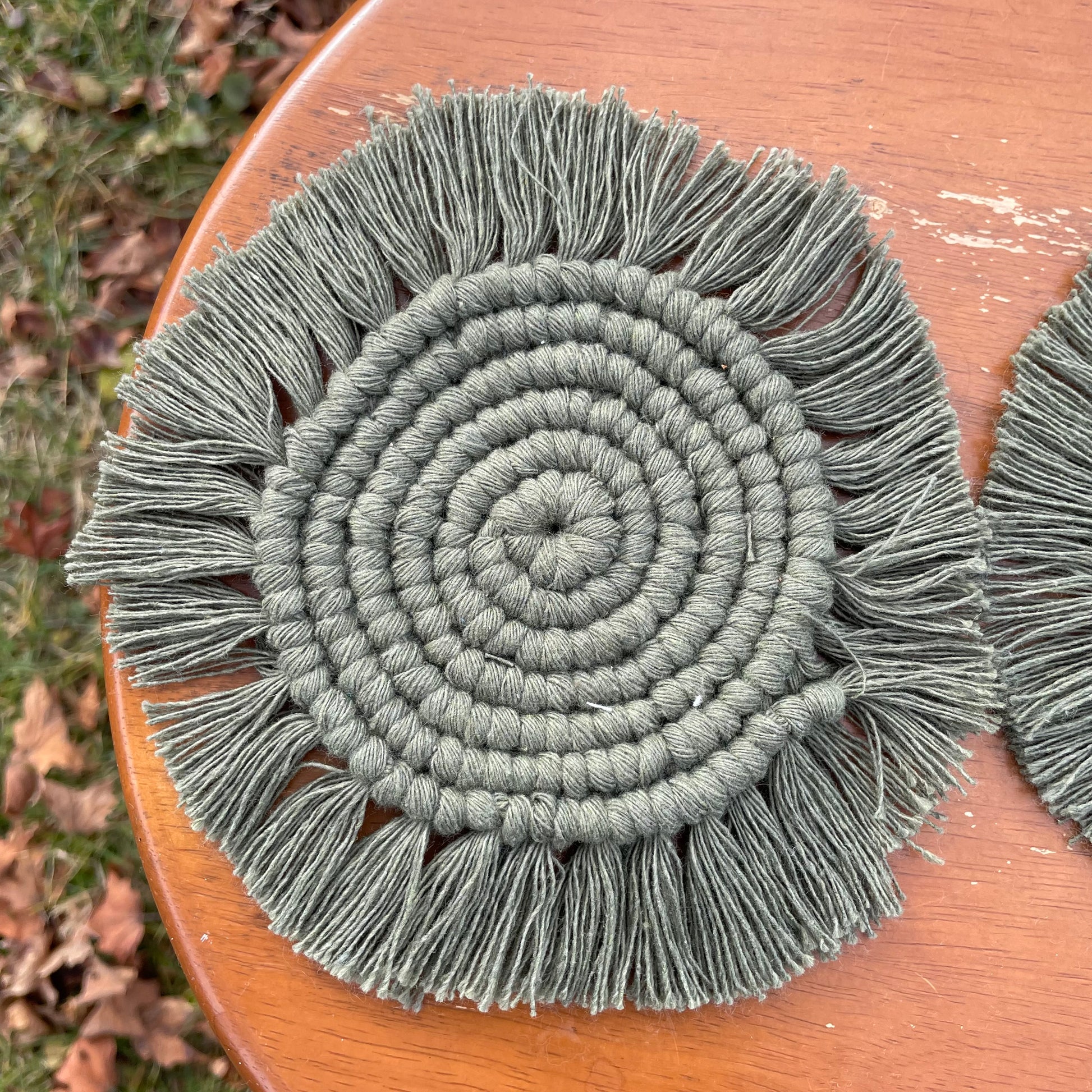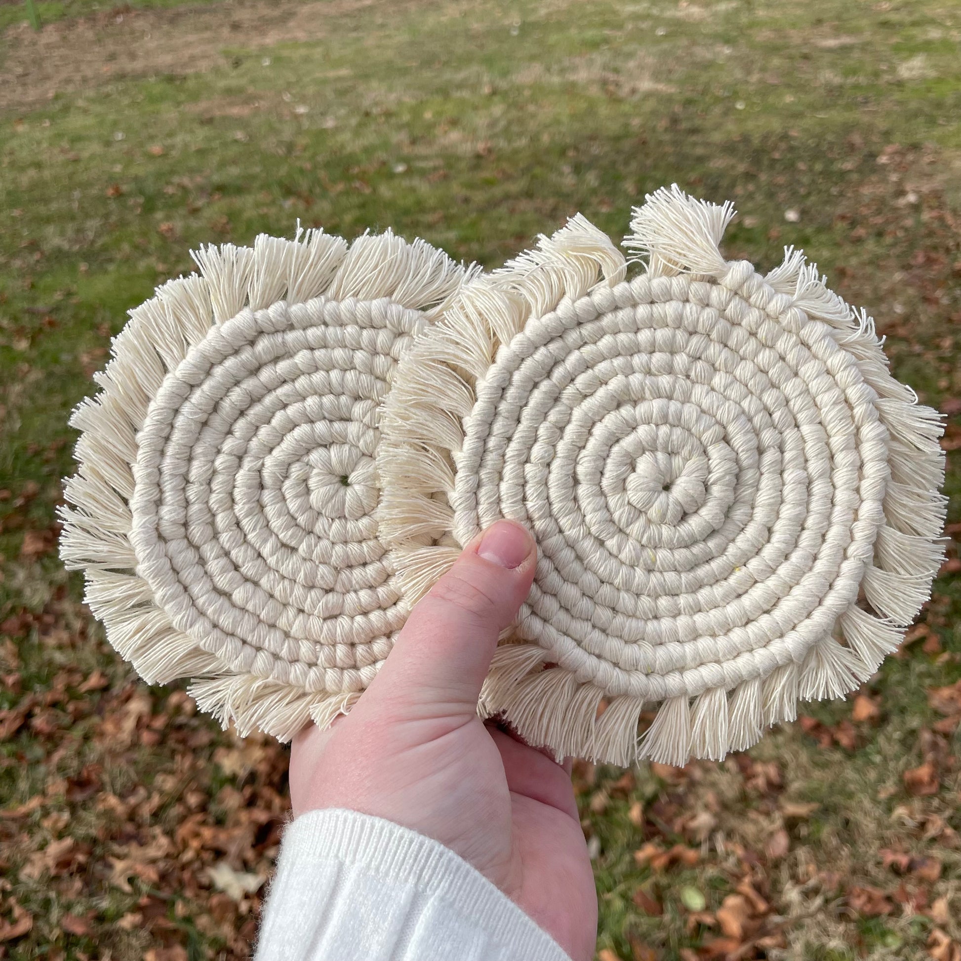 Protect your table and add a touch of bohemian style with these handcrafted macrame coasters. Choose from a variety of colors, or reach out for a custom creation. And, get two for the price of one - what a bargain!