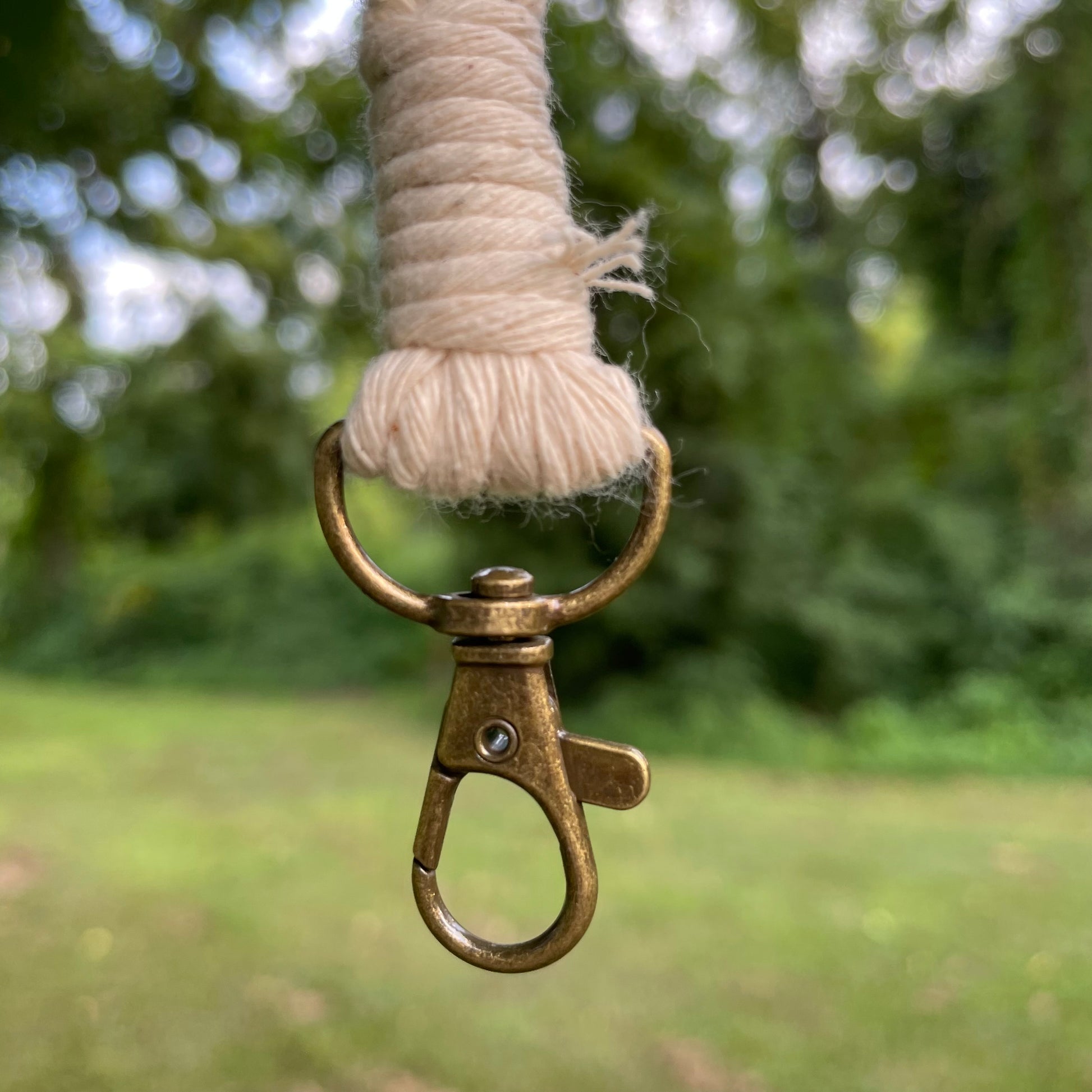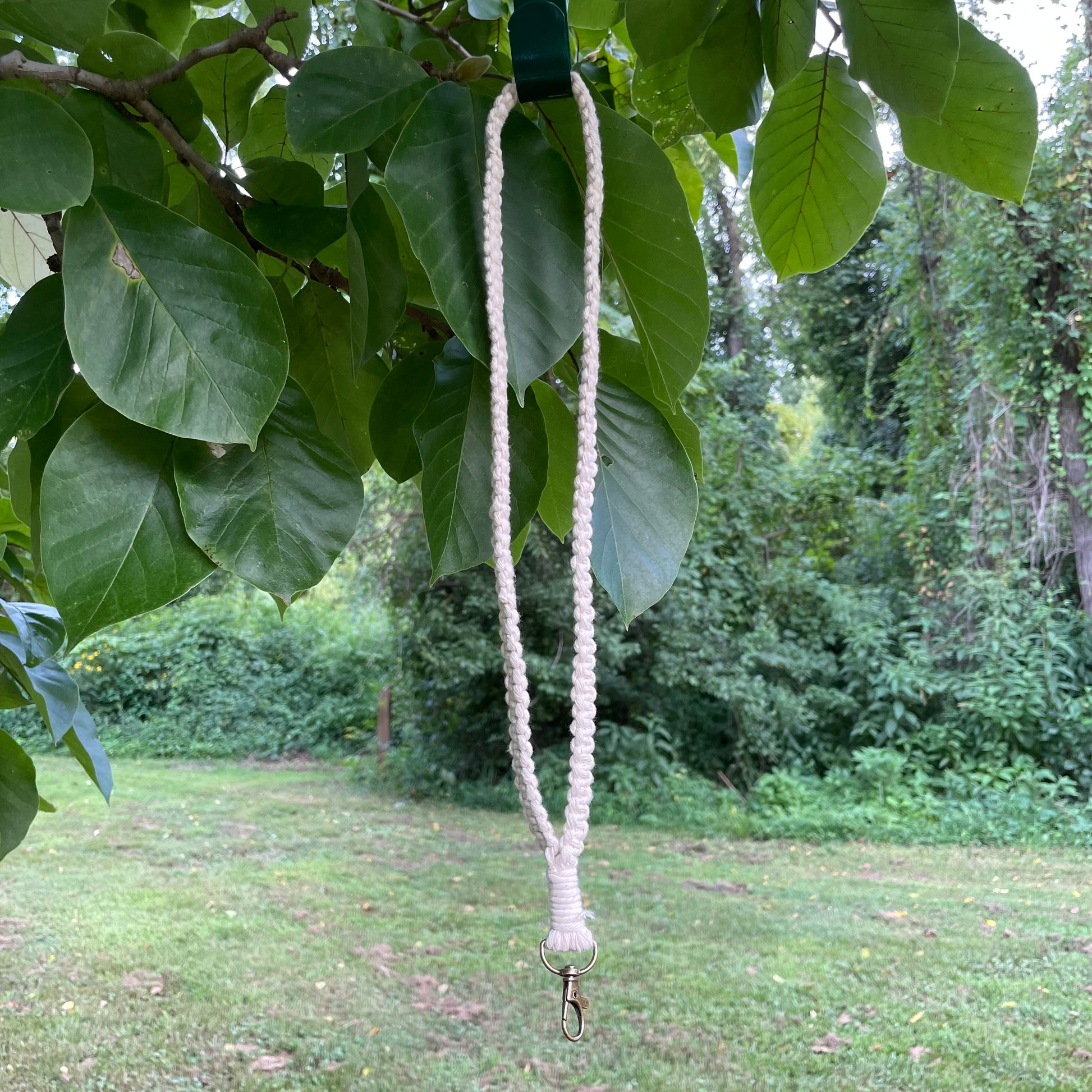 For those who want to show off their unique style while staying organized, this macrame lanyard is the perfect accessory. Handmade with recycled cotton, it's both environmentally friendly and super soft on your neck. Don't stress about losing important keys or IDs, just attach them to the keychain and you're good to go! Plus, it's great for teachers, students, nurses, and anyone else who wants to add a touch of personality to their everyday routine. Have a question? Don't hesitate to send us a message!