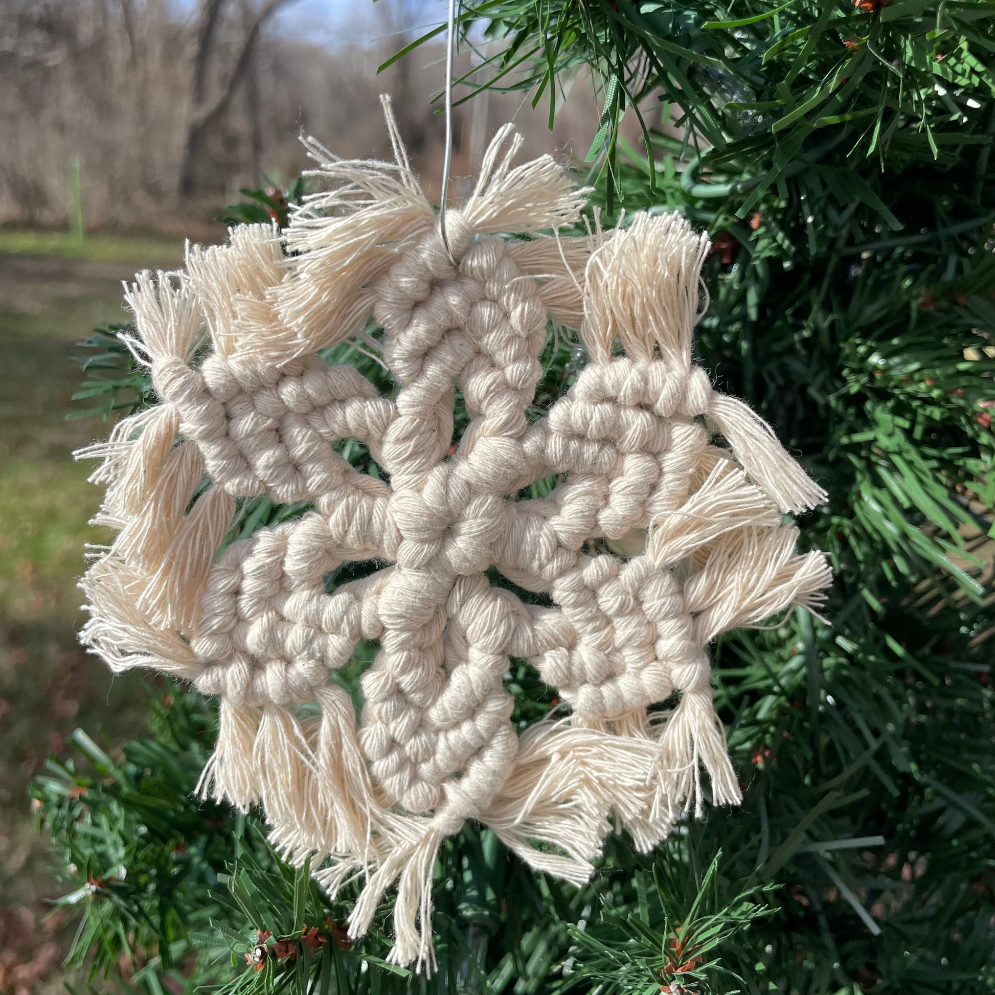 Bring some boho charm to your holiday decor with this stunning macrame snowflake ornament. It even comes with its own hanger (tree-decorating made easy)!