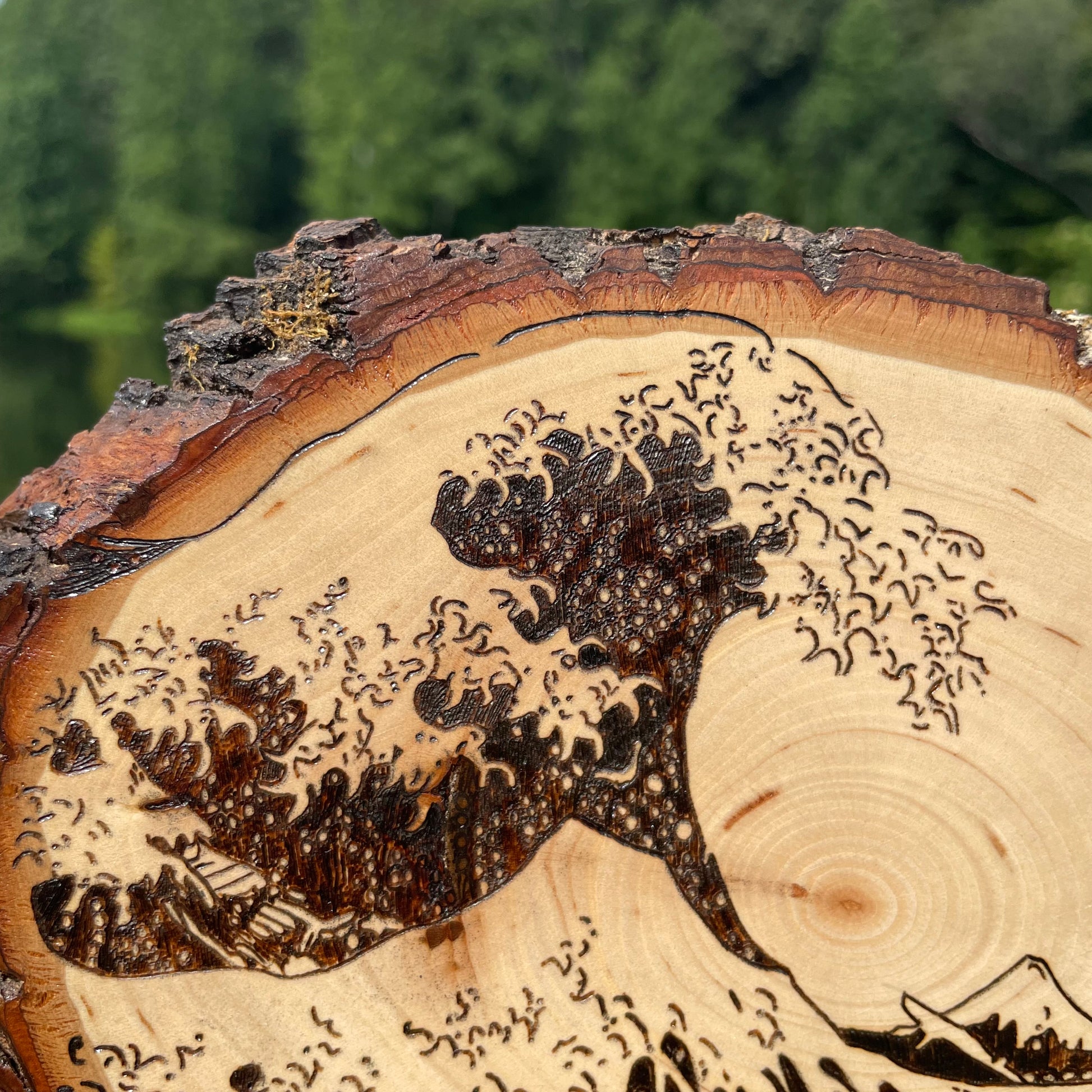 This piece was wood burned by hand using a pyrography pen. No laser printers here! Rest assured that hard work and love went into your piece!
