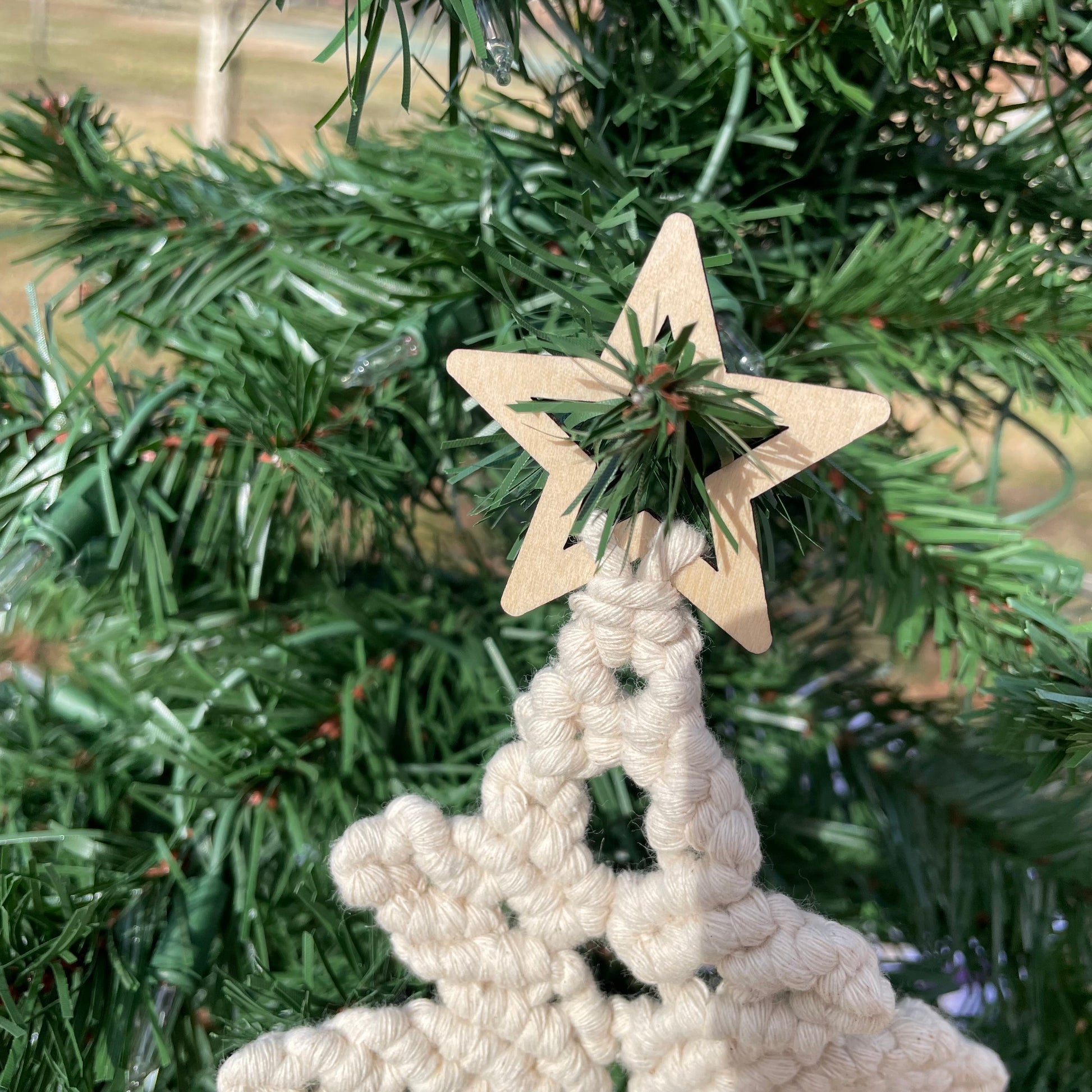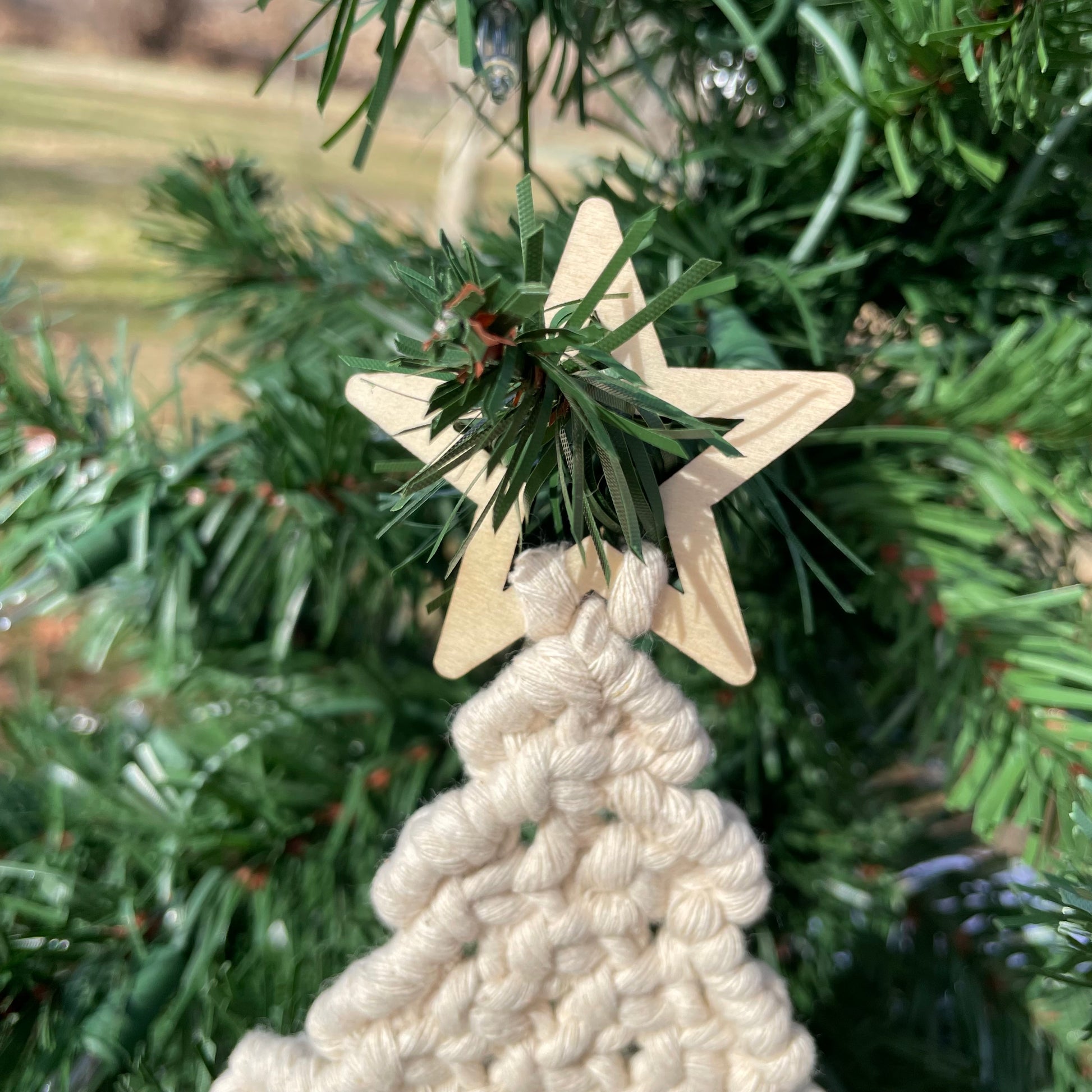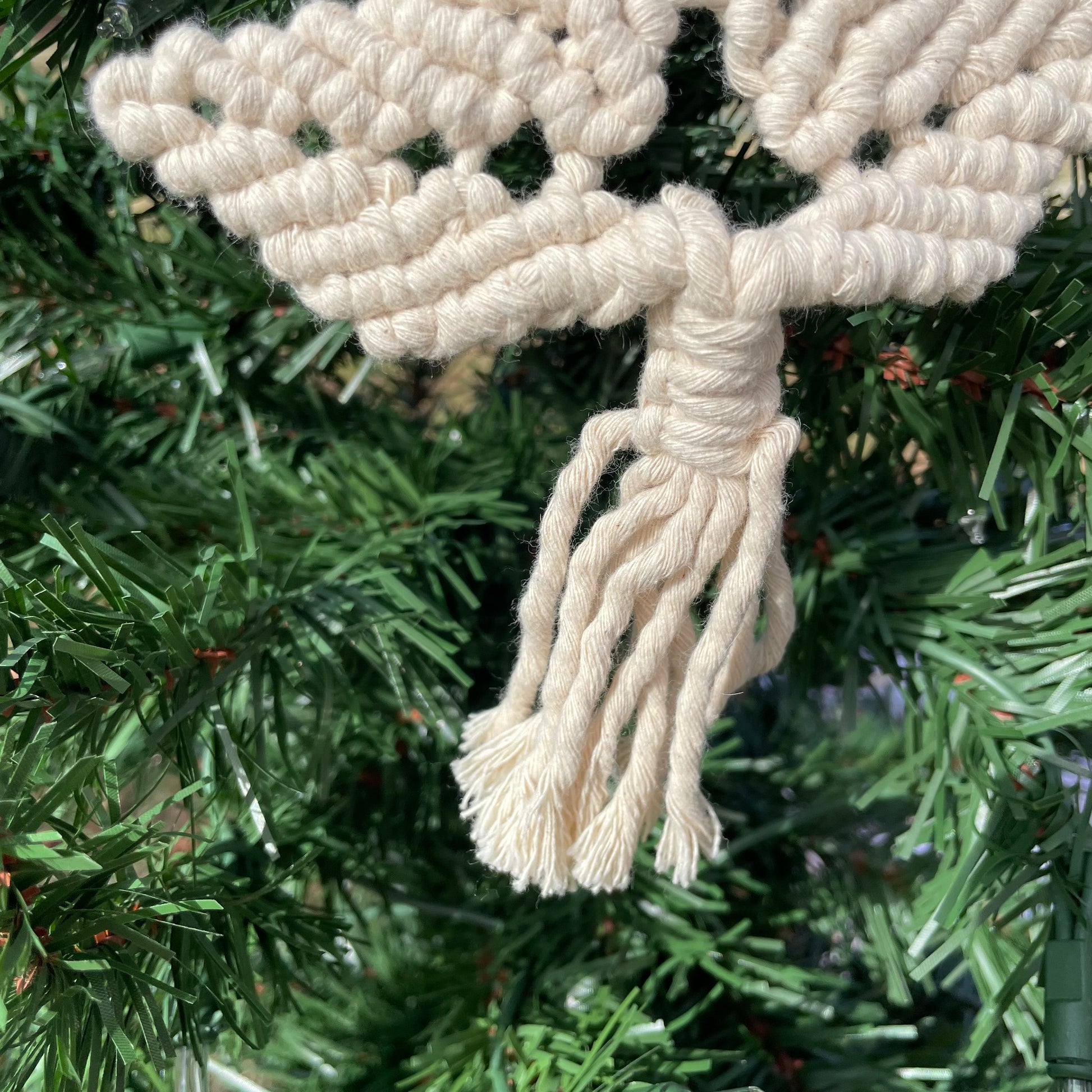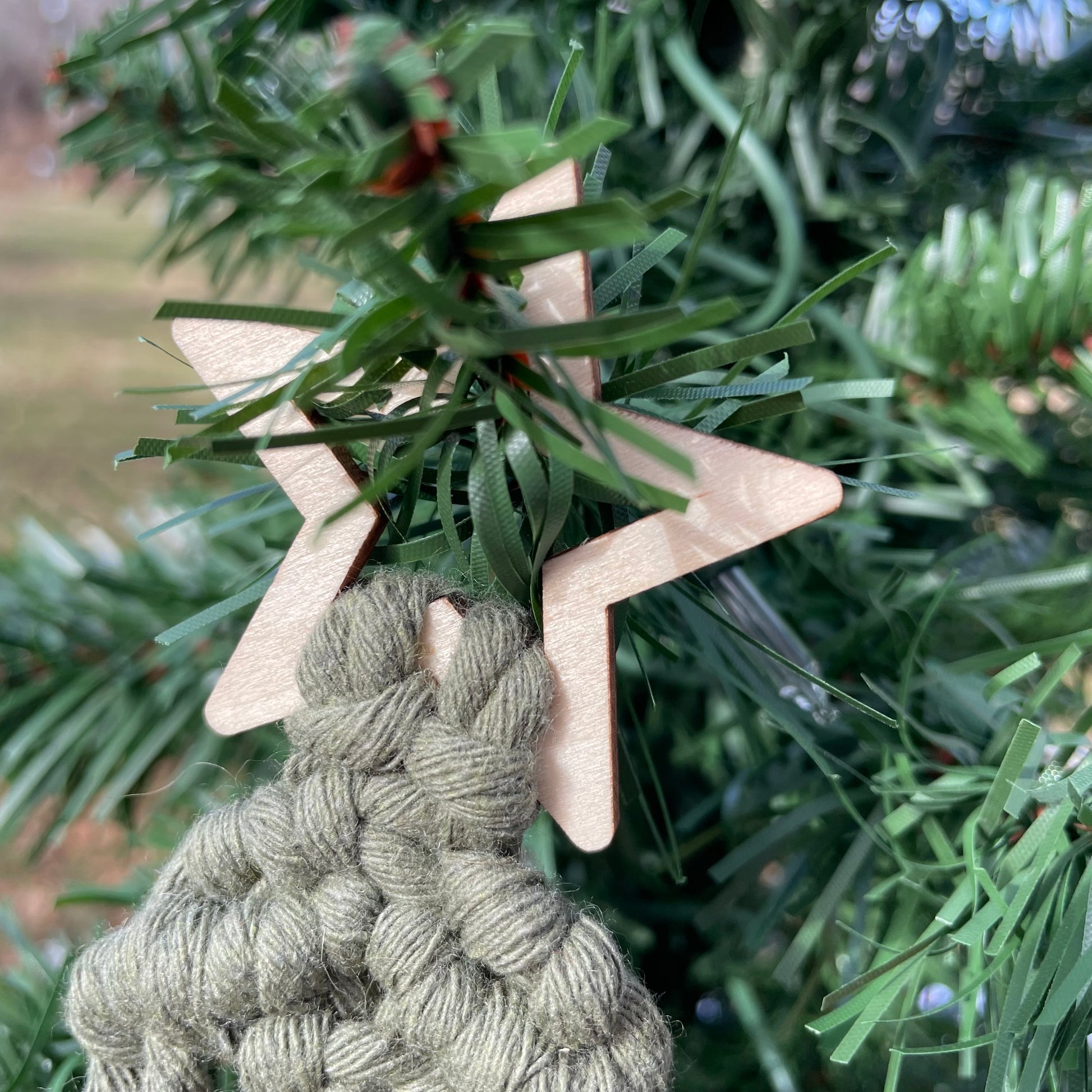 Adding some festive flair to your holiday decor has never been easier (or cuter)! This charming macrame tree ornament boasts a handcrafted wooden star and a delicate green cord made from recycled cotton. Not just for the tree, it can also be hung on your wall for a touch of whimsy.