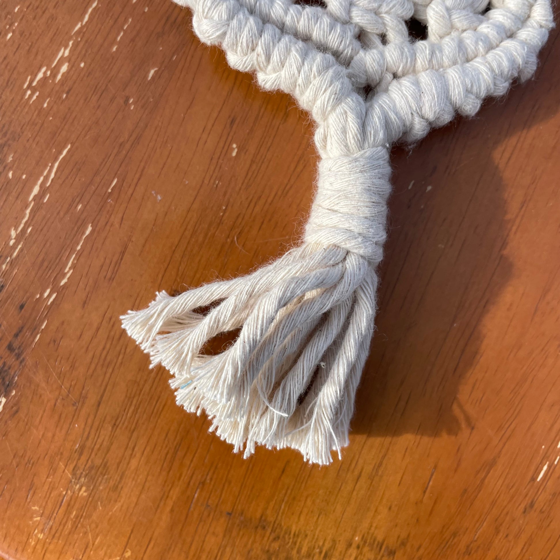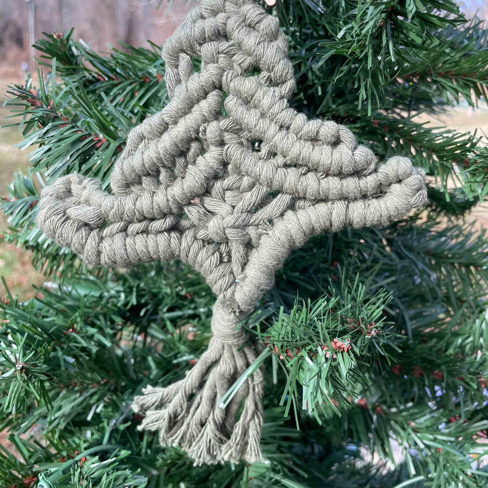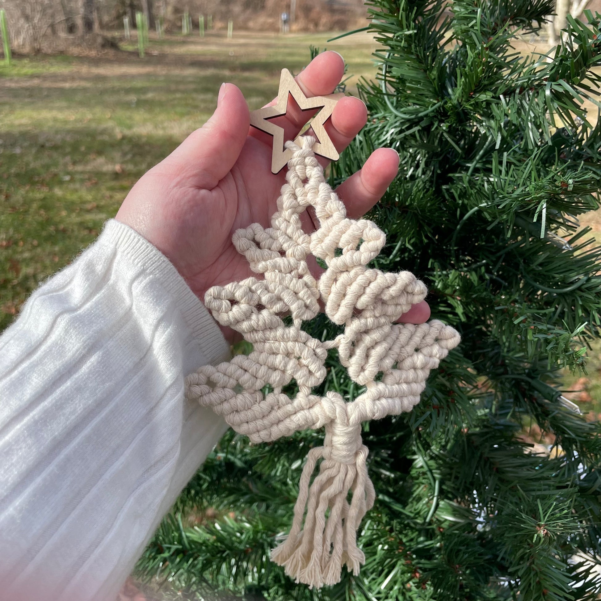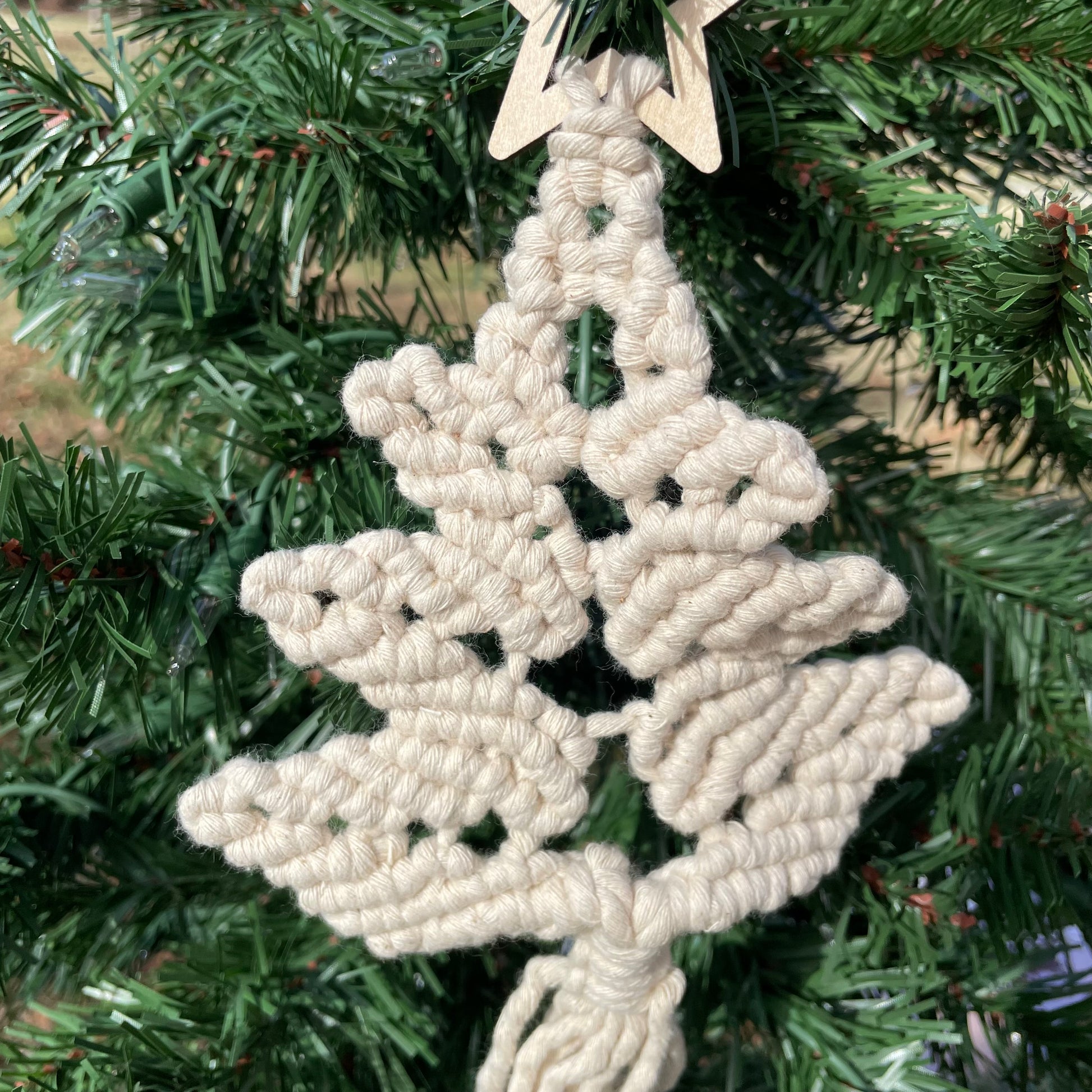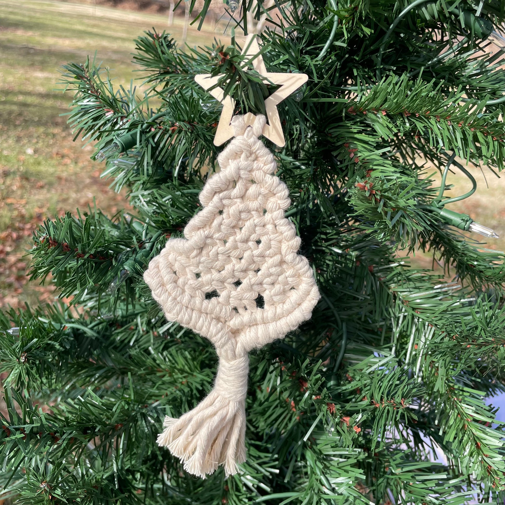 Adding some festive flair to your holiday decor has never been easier (or cuter)! This charming macrame tree ornament boasts a handcrafted wooden star and a delicate green cord made from recycled cotton. Not just for the tree, it can also be hung on your wall for a touch of whimsy.