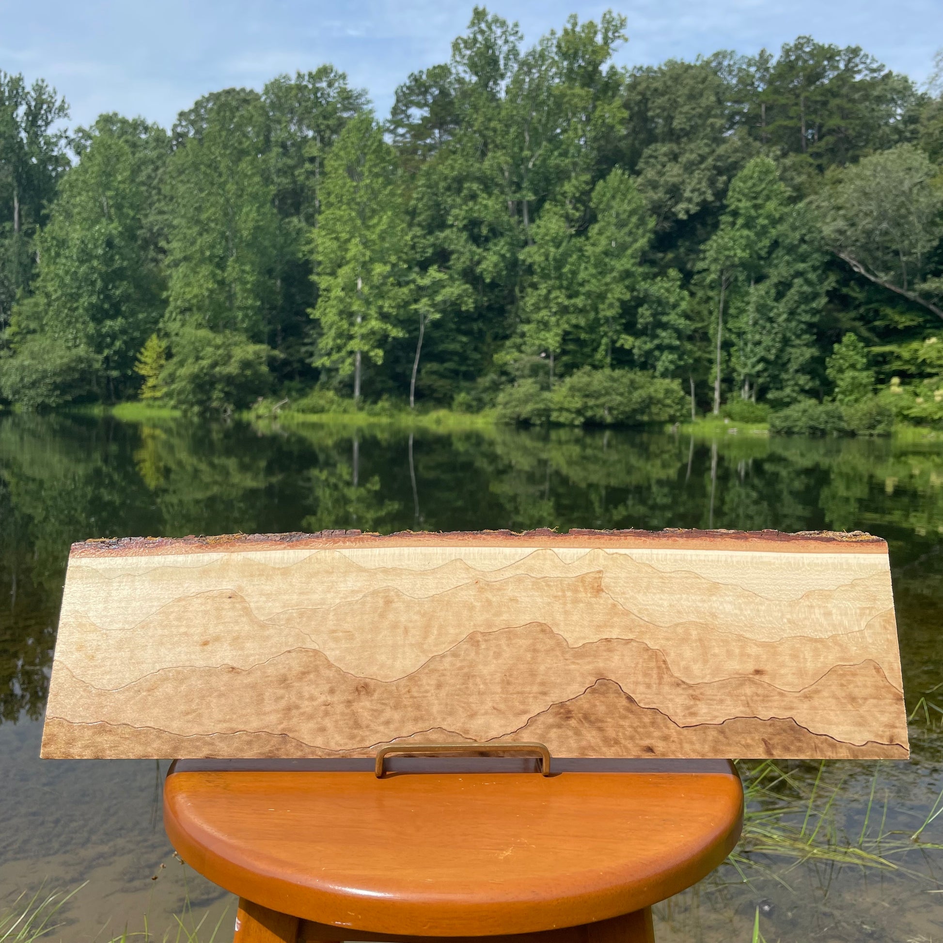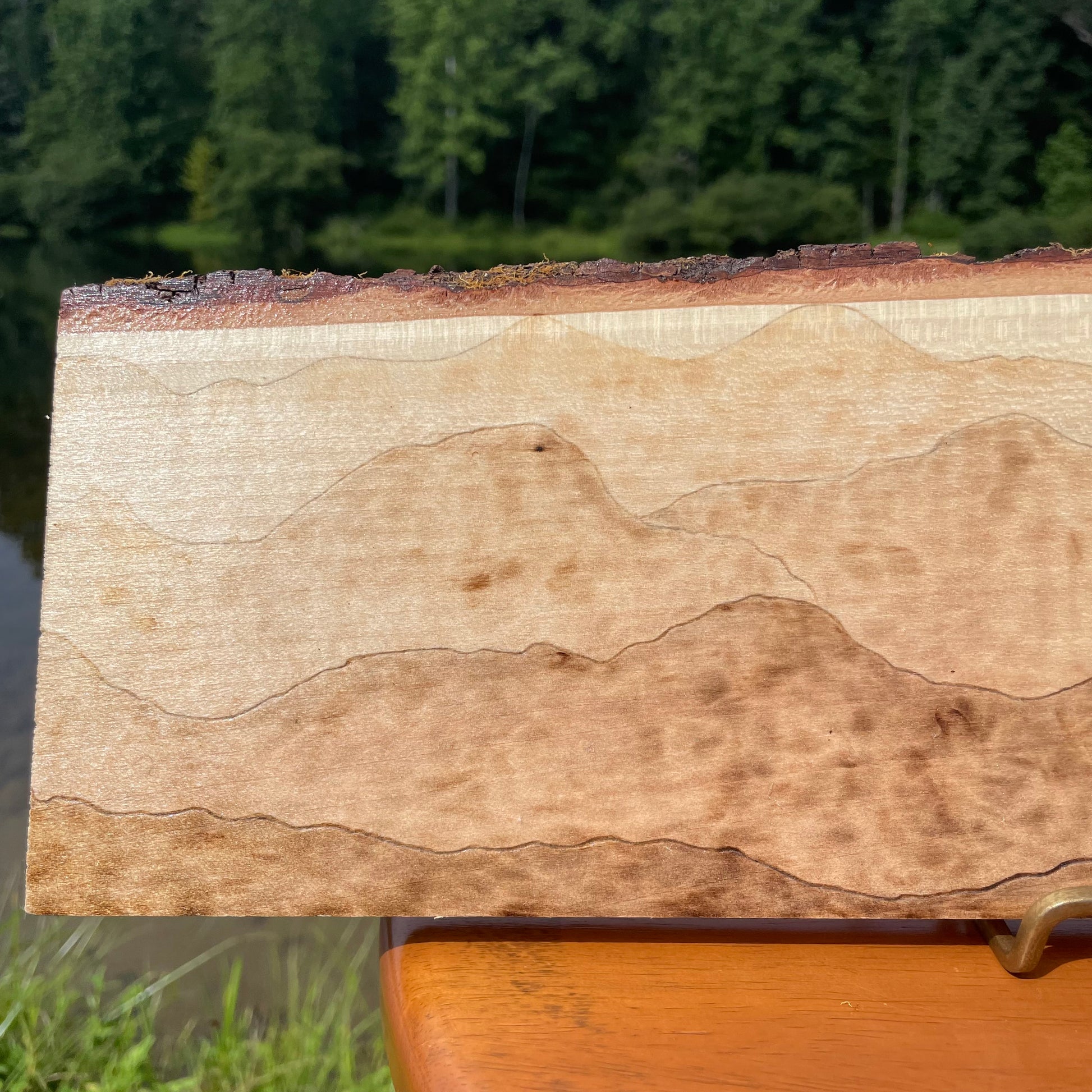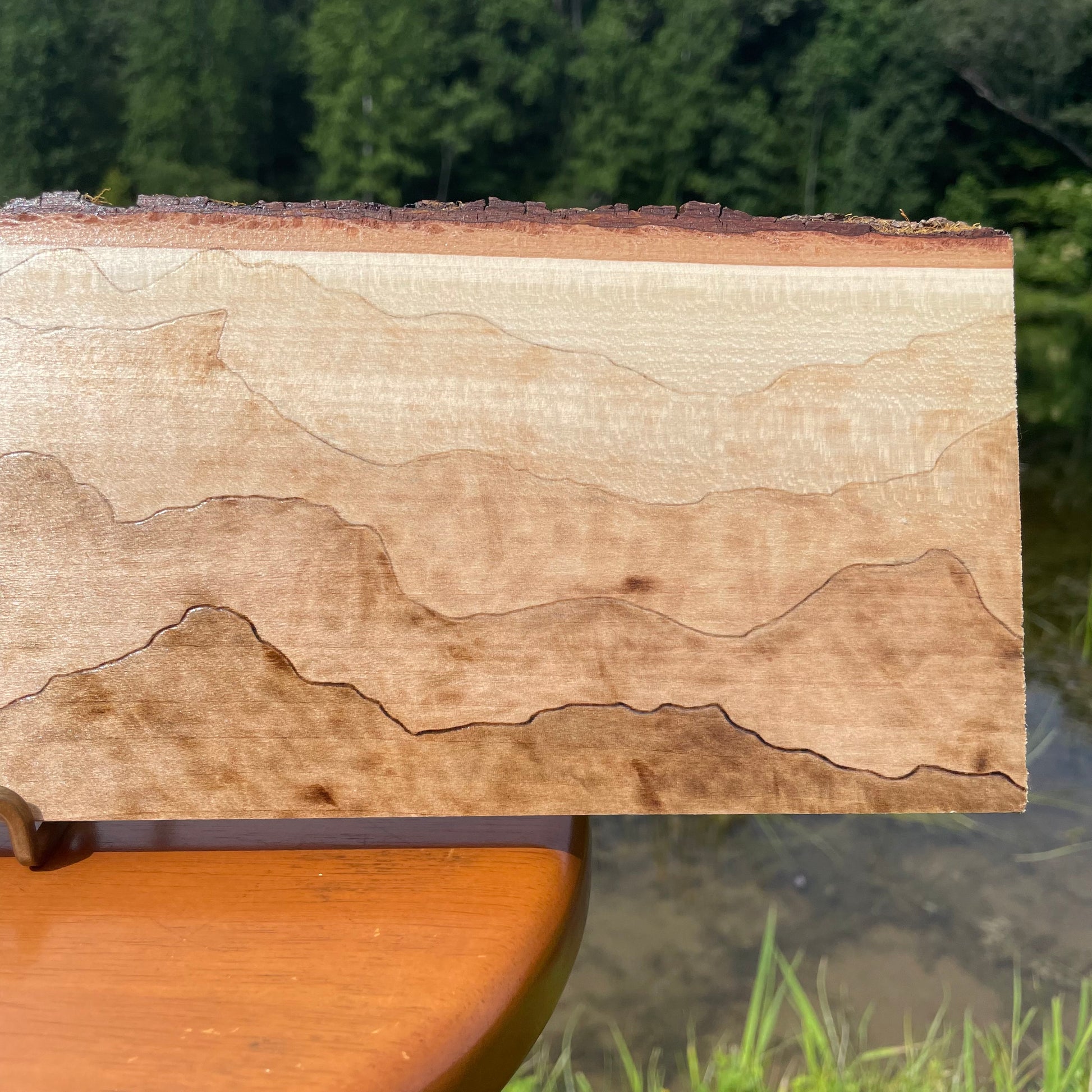 Make your wall decor a conversation piece with this one-of-a-kind Wood Burned Blue Ridge Mountains. Hand-burned and featuring a stunning mountain range, this piece captures the mystique of the Virginia mountains. Perfect for those who appreciate a touch of whimsy and the beauty in nature (especially on those foggy days!), this piece is a must-have for any home.