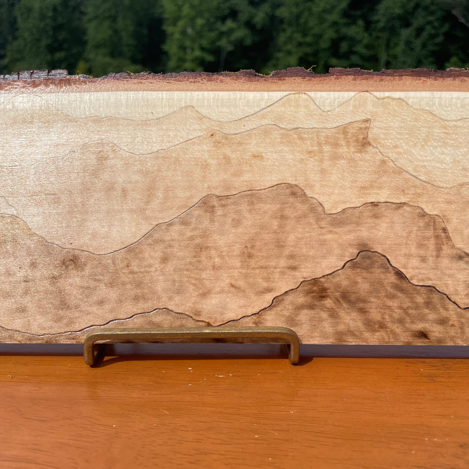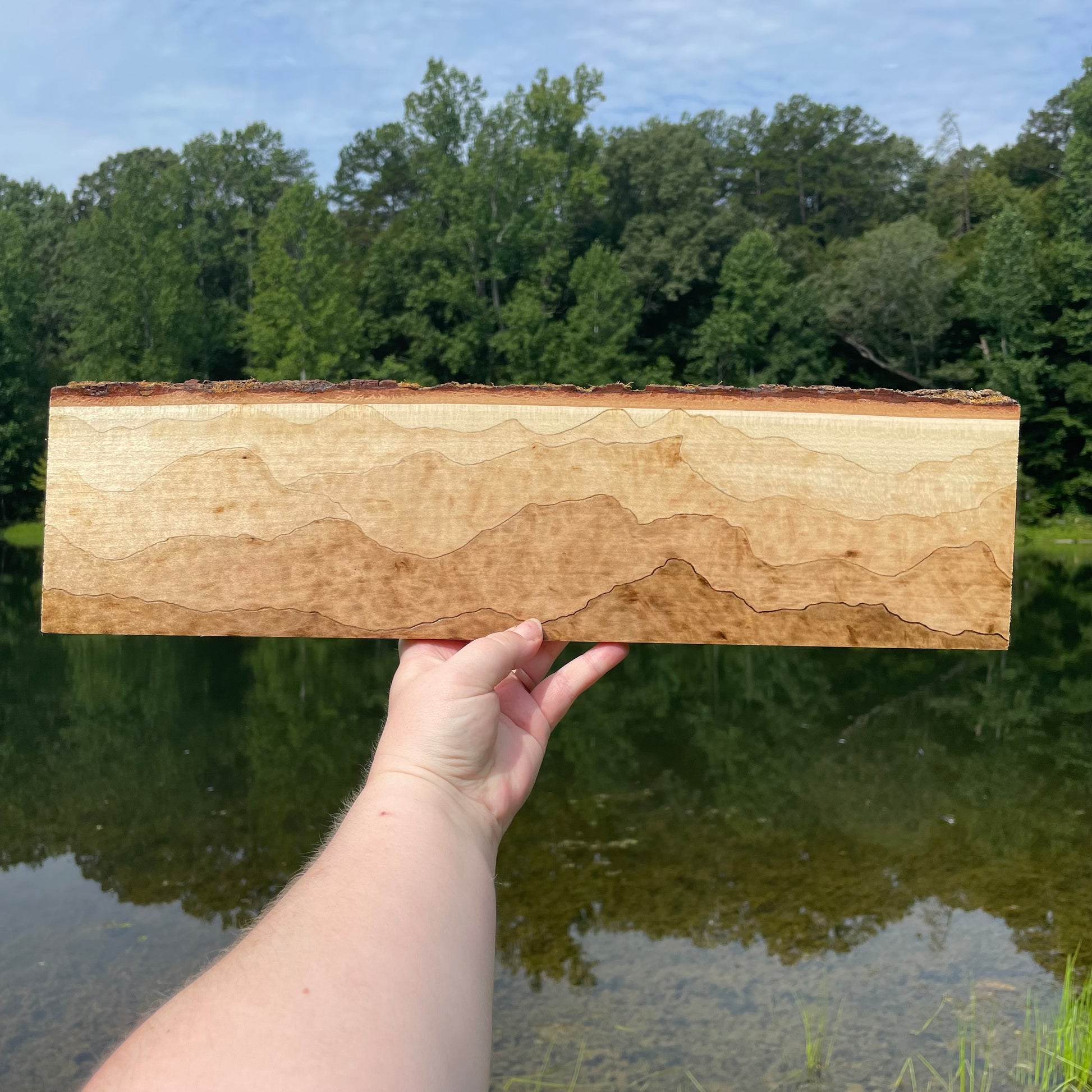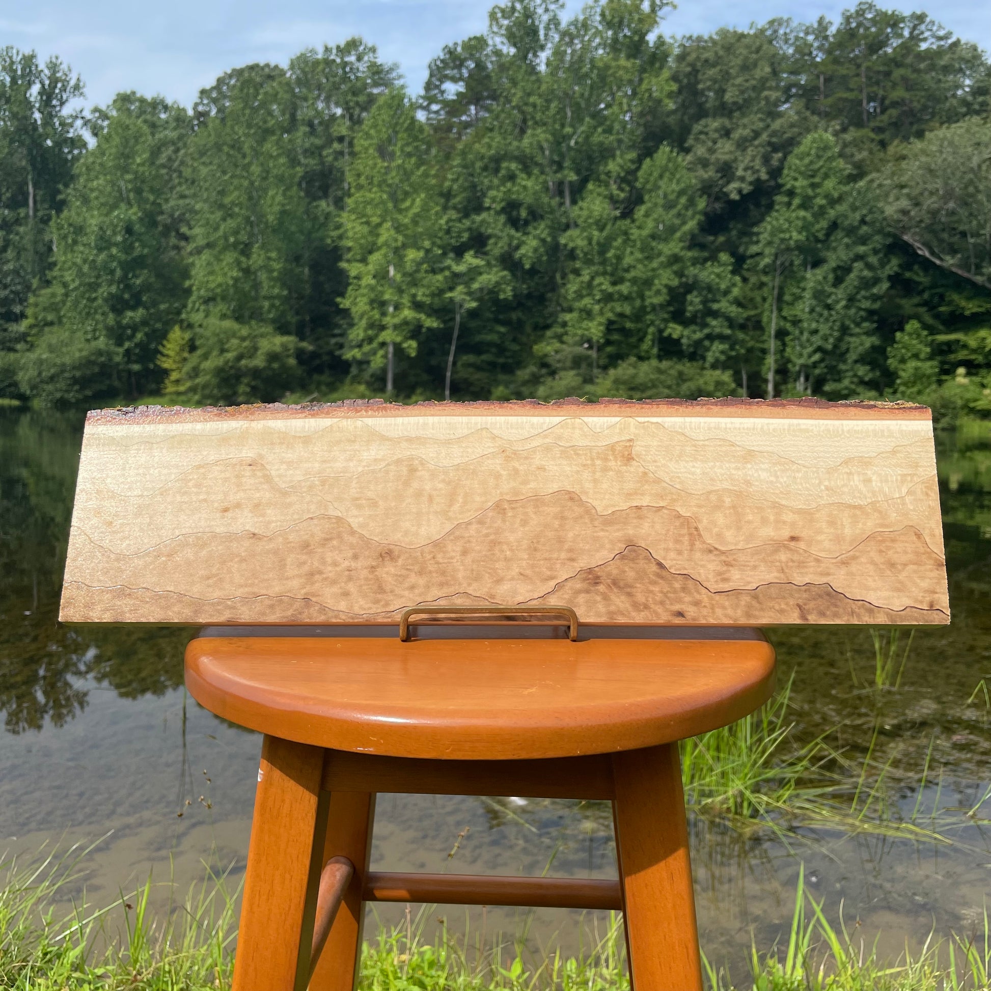 Make your wall decor a conversation piece with this one-of-a-kind Wood Burned Blue Ridge Mountains. Hand-burned and featuring a stunning mountain range, this piece captures the mystique of the Virginia mountains. Perfect for those who appreciate a touch of whimsy and the beauty in nature (especially on those foggy days!), this piece is a must-have for any home.