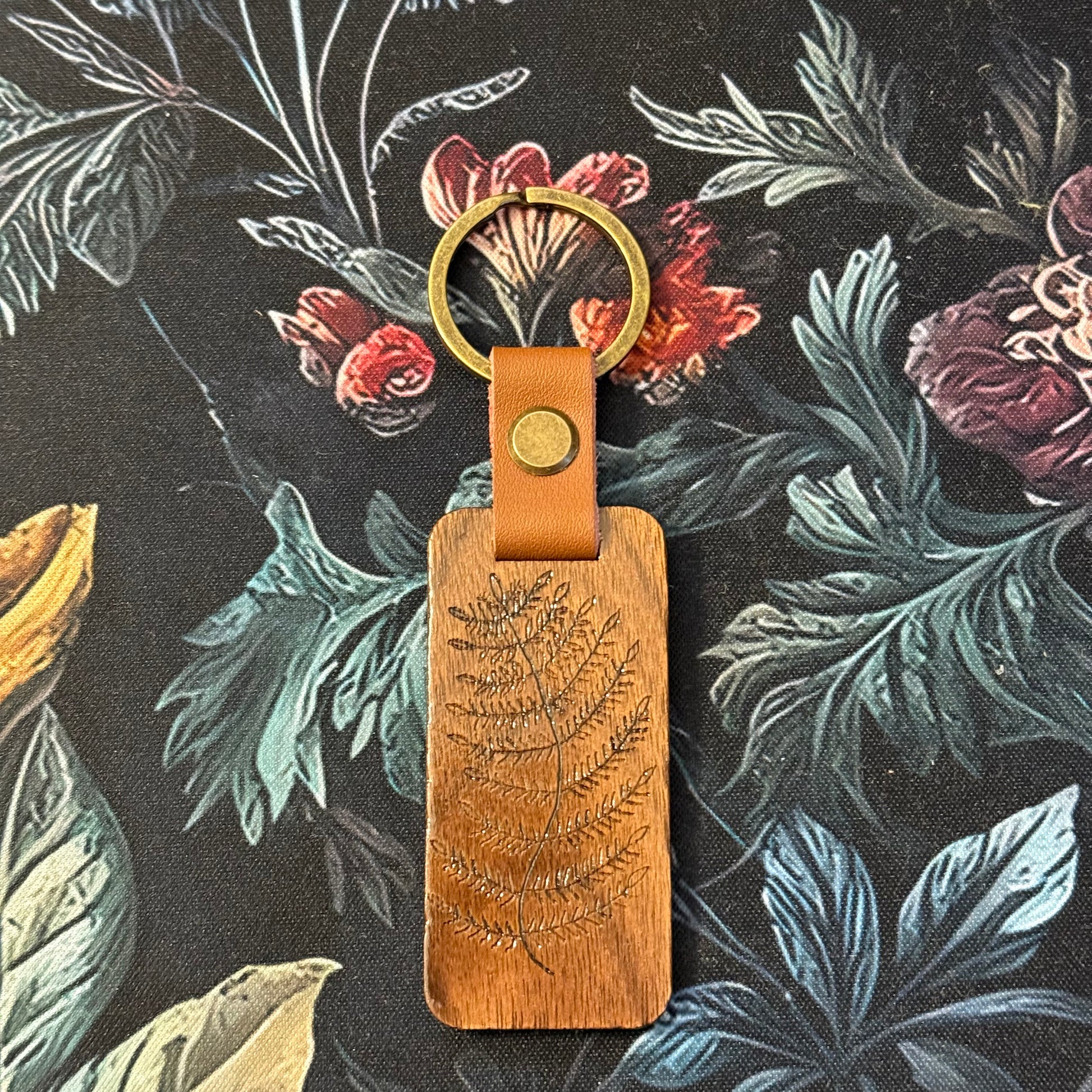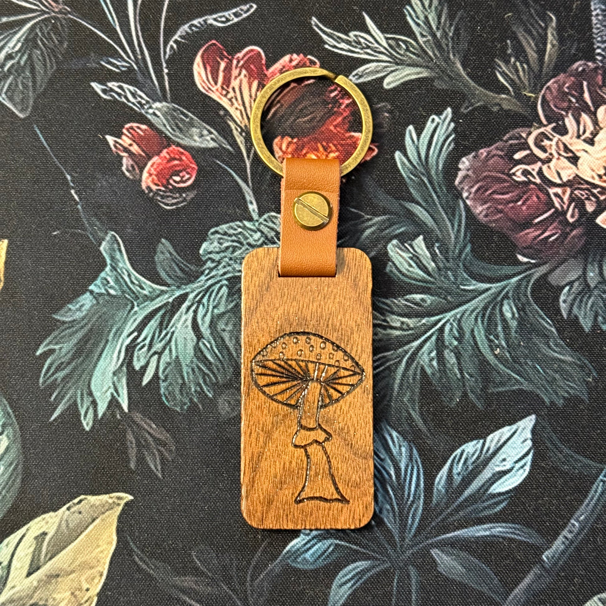 Wood Burned Mushroom & Fern Keychain
