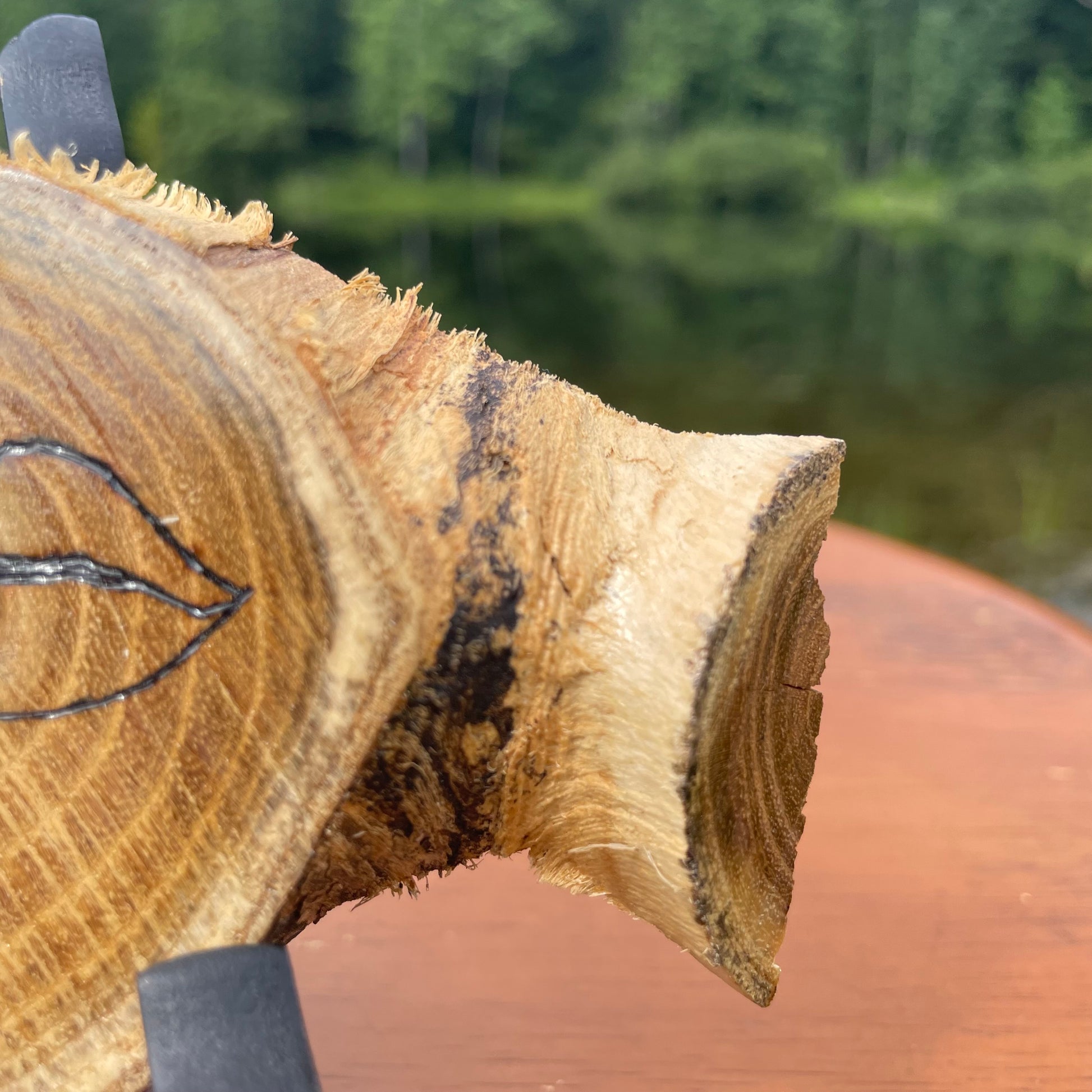 I use a hot wire pen to burn this image onto the wood slice. No laser printers here! Rest assured that hard work and love was put into your piece. I use a high gloss polyacrylic finish to seal the wood. This will protect the piece from general wear and tear, but it will not protect it from water, sun exposure, or dropping.